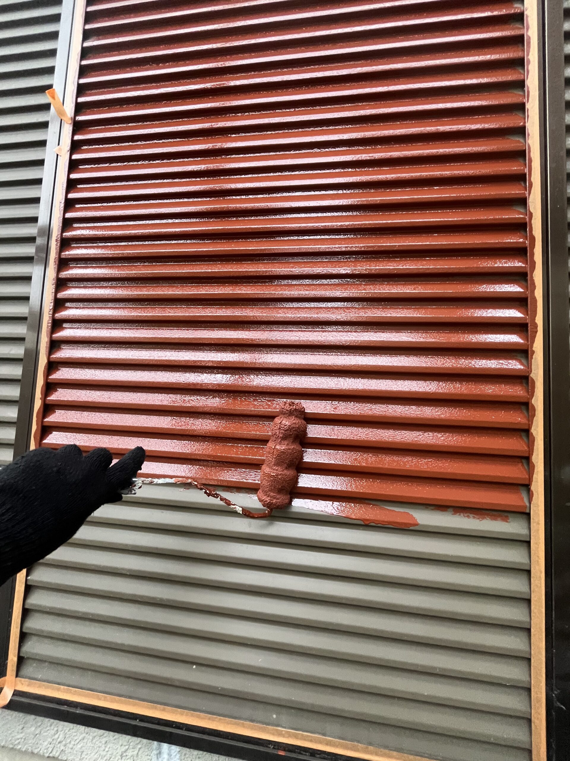 お世話になっております!ハヤタツの林です。本日は近況の施工事例を紹介させて頂きます。中川区のご自宅を施工させて頂きました。とても細い3㎜ほどの凹凸のある軒天がはしっておりました。ハケにて施工を試みまし